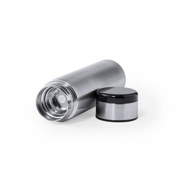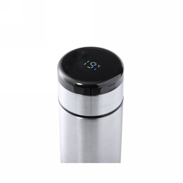 Termos 420 ml, posiada sitko zatrzymujące fusy, podwójne ścianki ze stali nierdzewnej z próżnią między ściankami, cyfrowy wyświetlacz temperatury napojów na wieczku, klasa termiczna: 4 +leakproof