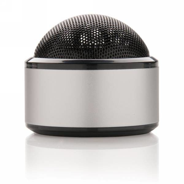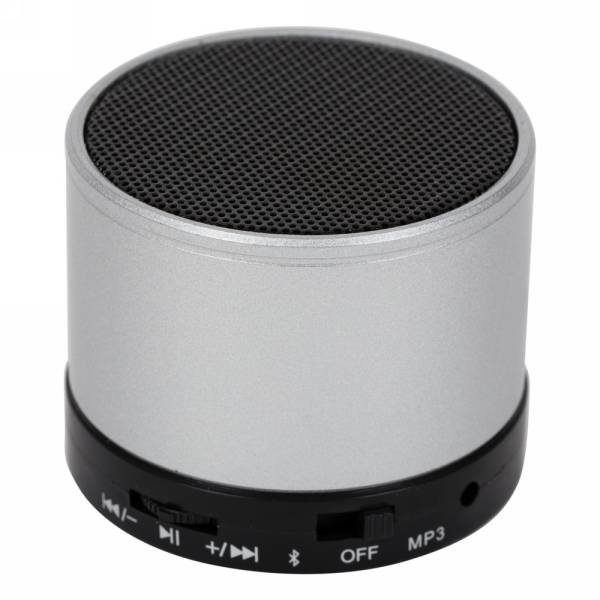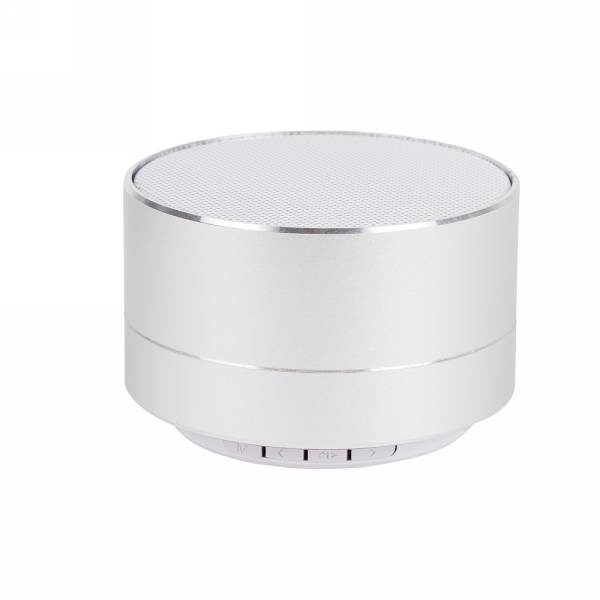 Głośnik bezprzewodowy 3W, wykonany z aluminium, metalowa maskownica, gumowe paski na spodzie poprawiają przyczepność i jakość dźwięku, specjalna konstrukcja głośnika zapewnia rozchodzenie się dźwięku we wszystkich kierunkach, w pełni naładowany akumulator o pojemności 350 mAh pozwala na odtwarzanie muzyki do 3 godzin, zasięg do 10 m, kabel micro USB do ładowania oraz kabel audio w komplecie, kompatybilny ze wszystkimi telefonami