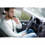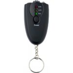 Alkomat z brelokiem, 3 światełka LED: zielone (gotowy), żółte (0,02%) i czerwone (0,05%), z przodu czerwona lampka LED