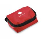 Apteczka w pokrowcu, 16 el., opatrunek nieprzylegający, plastry (5 małych, 1 duży i 2 średnie), płatek nasączony alkoholem, płatek antyseptyczny, rolka taśmy, bandaż trójkątny z 2 agrafkami, duża i mała rolka bandażu, nożyczki