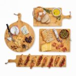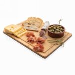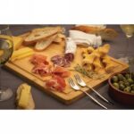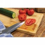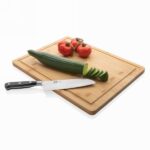 Deska do krojenia, serwowania, wykonana z naturalnego, surowego bambusa, posiada wyżłobienie na sok zapobiegające rozlaniu, w eleganckim pudełku z papieru kraftowego, wyłącznie mycie ręczne