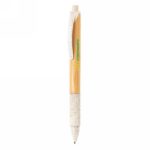 Długopis z bambusowym trzonem, kolorowe elementy wykonane z mieszanki 60% słomy pszenicznej i 40% ABS, wkład Dokumental® w kolorze niebieskim w komplecie, długość pisania ok. 1200 m, kulka TC zapewnia wygodne pisanie
