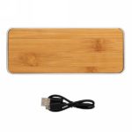 Głośnik bezprzewodowy 3W, BT 4.2, wykonany z bambusa, aluminium i tkaniny, wbudowany subwoofer poprawiający wydajność basów, akumulator o pojemności 400 mAh umożliwia odtwarzanie muzyki do 4 godzin, ponowne naładowanie w 1,5 godziny, zasięg do 10 m, kabel micro USB wykonany z TPE bez dodatku PVC w komplecie
