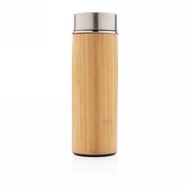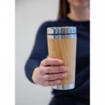 Bambusowy kubek podróżny 450 ml, wnętrze ze stali nierdzewnej 304, powłoka z organicznego bambusa na zewnątrz, utrzymuje temperaturę ciepłych napojów do 3 godzin oraz zimnych do 6 godzin