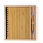 Bambusowy notatnik (ok. A5, 80 kartek w linie), twarda okładka, długopis w komplecie, w pudełku podarunkowym