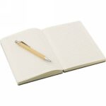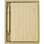 Bambusowy notatnik (ok. B6, 128 kartek w linie), bambusowy długopis w komplecie, w pudełku z papieru kraftowego