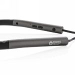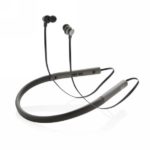 Basowe słuchawki douszne BT 4.2 z opaską na szyję, magnetyczne końcówki, wykonane z wysokiej jakości tworzywa ABS, w pełni naładowany akumulator o pojemności 80 mAh umożliwia odtwarzanie muzyki do 6 godzin, luksusowe etui podróżne w komplecie