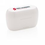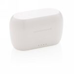 Bezprzewodowe słuchawki duszne, BT 5.0, wykonane z ABS, wbudowany mikrofon, funkcja odbierania połączeń stereo, przycisk dotykowy, etui z akumulatorem 300 mAh pełniące funkcję stacji ładującej w komplecie, akumulator słuchawek o pojemności 30 mAh umożliwia odtwarzanie muzyki na średnim poziomie głośności do 4 godzin, ponowne naładowanie za pomocą etui w 1,5 godziny, zasięg do 10 m, 3 rozmiary nakładek dousznych w komplecie, kabel micro USB z TPE bez dodatku PVC w komplecie