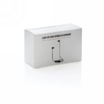 Bezprzewodowe słuchawki douszne BT 4.2, funkcja odbierania połączeń, wbudowany mikrofon, w pełni naładowany akumulator o pojemności 55 mAh umożliwia odtwarzanie muzyki do 3 godzin, ponowne ładowanie w 1,5 godziny, zasięg do 10 m, grawer ukazuje podświetlaną powierzchnię