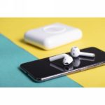 Słuchawki bezprzewodowe BT 4.2, douszne, w etui ze stacją ładującą słuchawki, funkcja odbierania połączeń, wbudowany mikrofon, ładowane przez USB, Power bank 5200 mAh, wejście typu C, bezprzewodowa ładowarka 5W, działa z telefonami posiadającymi możliwość ładowania indukcyjnego, kabel w komplecie