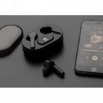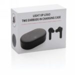 Bezprzewodowe słuchawki douszne TWS (True Wireless Stereo), BT 5.0, funkcja odbierania połączeń, muzyka oraz rozmowy telefoniczne stereo, etui z wbudowanym akumulatorem 300 mAh pełniące funkcję stacji ładującej w komplecie, grawer na stacji ładującej ukazuje podświetlaną powierzchnię, akumulator słuchawek umożliwia odtwarzanie muzyki do 3 godzin, ponowne naładowanie za pomocą etui w 1,5 godziny, zasięg do 10 metrów, 3 rozmiary nakładek dousznych w komplecie, kabel micro USB wykonany z TPE bez dodatku PVC w komplecie