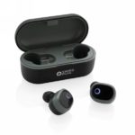 Bezprzewodowe słuchawki douszne TWS (True Wireless Stereo), BT 5.0, wykonane z ABS, funkcja odbierania połączeń, muzyka oraz rozmowy telefoniczne stereo, etui 500 mAh pełniące funkcję stacji ładującej w komplecie, akumulator słuchawek 50 mAh umożliwia odtwarzanie muzyki do 3 godzin, ponowne naładowanie za pomocą etui w 2 godziny, zasięg do 10 metrów, różne rozmiary nakładek dousznych w komplecie