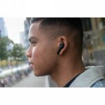 Bezprzewodowe słuchawki douszne z systemem aktywnej redukcji szumów (ANC), mocny i czysty dźwięk, poziom redukcji szumów do 25 dB, wodoodporne IPX4, dotykowy panel sterowania, wbudowany mikrofon, funkcja odbierania połączeń, do 5 godzin odtwarzania na jednym ładowaniu, etui ładujące zapewnia 20 godzin odtwarzania, nie zawiera PVC, opakowanie nie zawiera plastiku
