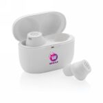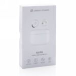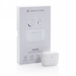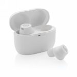 Bezprzewodowe słuchawki douszne, mocny i głęboki dźwięk, poziom redukcji szumów do 25 dB, wodoodporne IPX5, dotykowy panel sterowania, wbudowany mikrofon, funkcja odbierania połączeń, do 5 godzin odtwarzania na jednym ładowaniu, etui ładujące zapewnia 18 godzin odtwarzania, nie zawiera PVC, opakowanie nie zawiera plastiku