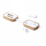 Słuchawki bezprzewodowe BT 5.0 w bambusowym magnetycznym etui ładującym, douszne, bateria stacji ładującej 400 mAh, funkcja odbierania połączeń, wbudowany mikrofon, ładowane przez USB, kabel micro USB w komplecie