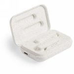 Słuchawki bezprzewodowe BT 5.0 z włókien słomy pszenicznej, w magnetycznym etui ładującym, douszne, bateria stacji ładującej 400 mAh, funkcja odbierania połączeń, wbudowany mikrofon, ładowane przez USB, kabel micro USB w komplecie