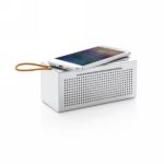 Głośnik bezprzewodowy 6W, BT 4.1, ładowarka bezprzewodowa 5W, wykonany z aluminium, funkcja odbierania połączeń, wbudowany mikrofon, wysokiej jakości dźwięk z głębokim basem, wykonany z wysokiej jakości aluminium, w przypadku korzystania wyłącznie z funkcji głośnika akumulator o pojemności 4400 mAh umożliwia odtwarzanie muzyki do 8 godzin, podczas używania obu funkcji urządzenie powinno być podłączone do zasilania, bezprzewodowe ładowanie jest kompatybilne ze wszystkimi urządzeniami posiadającymi możliwość ładowania indukcyjnego, kabel micro USB 150 cm w komplecie