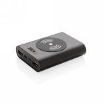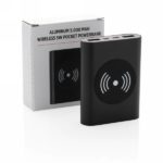 Kompaktowy bezprzewodowy power bank 5000 mAh, ładowarka bezprzewodowa 5W, 2 wyjścia USB do ładowania 2 urządzeń jednocześnie, 4 diody wskazujące poziom naładowania, kieszonkowy rozmiar, wykonany z aluminium, wbudowany akumulator litowo-polimerowy klasy A o dużej gęstości i trwałości, w pełni naładowane urządzenie może naładować telefon do 5 razy, bezprzewodowe ładowanie jest kompatybilne ze wszystkimi urządzeniami posiadającymi możliwość ładowania indukcyjnego, wejście micro USB 5V/1.5A, wyjście 5V/2.1A, wyjście bezprzewodowe 5W 5V/1A, kabel micro USB w komplecie