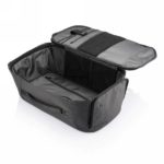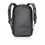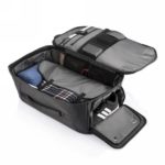 Plecak chroniący przed kieszonkowcami Bobby Duffle, torba podróżna o rozmiarze bagażu podręcznego, pojemność 34 litry, odporny na przecięcia materiał, przestronna przegroda główna z mniejszymi kieszeniami wewnątrz, miękka przegroda na laptopa do 17″, dzięki specjalnemu paskowi plecak można łatwo zamienić w torbę podróżną, na dole oddychająca kieszeń na buty, wykonany z ekologicznego materiału RPET, dużo ukrytych kieszeni i zamków, kieszenie z ochroną RFID, wzór zastrzeżony®