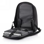 Plecak chroniący przed kieszonkowcami Bobby Hero Regular, wodoodporny i odporny na przecięcia materiał, wykonany z materiału rPET, ukryte zamki i kieszenie, wewnątrz miękkie przegrody na laptopa 15,6″ i tablet do 12,9″, zintegrowany port USB do ładowania telefonów (power-bank nie jest dołączony), odblaskowe paski zwiększające widoczność, pasek do zamocowania na walizce, wzór zastrzeżony®