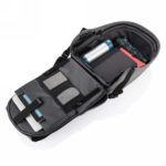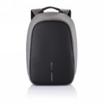 Plecak chroniący przed kieszonkowcami Bobby Hero Small, wodoodporny i odporny na przecięcia materiał, wykonany z przyjaznego środowisku materiału rPET, ukryte zamki i kieszenie, wewnątrz miękkie przegrody na laptopa do 13,3″ i tablet do 12,9″, zintegrowany port USB do ładowania telefonów (power-bank nie jest dołączony), odblaskowe paski zwiększające widoczność, pasek do zamocowania na walizce, wzór zastrzeżony®