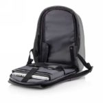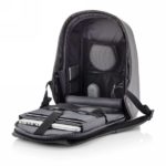 Plecak chroniący przed kieszonkowcami Bobby Hero XL, wodoodporny i odporny na przecięcia materiał, wykonany z przyjaznego środowisku materiału rPET, ukryte zamki i kieszenie, wewnątrz miękkie przegrody na laptopa do 17″ i tablet do 12,9″, zintegrowany port USB do ładowania telefonów (power-bank nie jest dołączony), odblaskowe paski zwiększające widoczność, pasek do zamocowania na walizce, wzór zastrzeżony®
