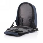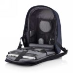Plecak chroniący przed kieszonkowcami Bobby Hero XL, wodoodporny i odporny na przecięcia materiał, wykonany z przyjaznego środowisku materiału rPET, ukryte zamki i kieszenie, wewnątrz miękkie przegrody na laptopa do 17″ i tablet do 12,9″, zintegrowany port USB do ładowania telefonów (power-bank nie jest dołączony), odblaskowe paski zwiększające widoczność, pasek do zamocowania na walizce, wzór zastrzeżony®
