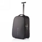 Bobby, plecak na kółkach chroniący przed kieszonkowcami, wykonany z materiałów pochodzących z recyklingu, teleskopowy uchwyt, chowane paski na ramiona, osłona na koła zapobiegająca ubrudzeniu, zintegrowany port USB do ładowania telefonów (power-bank nie jest dołączony), przestronna przegroda główna zamykana na zamek cyfrowy TSA®, wiele kieszeni wewnątrz, przegroda na laptopa do 17″, kieszeń z ochroną RFID, rozmiar bagażu podręcznego, wzór zastrzeżony®