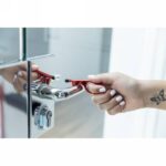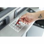 Brelok do bezdotykowego otwierania drzwi i korzystania z powierzchni wspólnych takich jak klamki, włączniki, bankomaty itp., wykonany z ABS, długopis z touch penem w komplecie