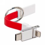 Brelok do kluczy, kabel do ładowania i synchronizacji z 3 końcówkami: USB, USB typu C oraz końcówką 2 w 1 (micro USB oraz kompatybilną z urządzeniami iOS)