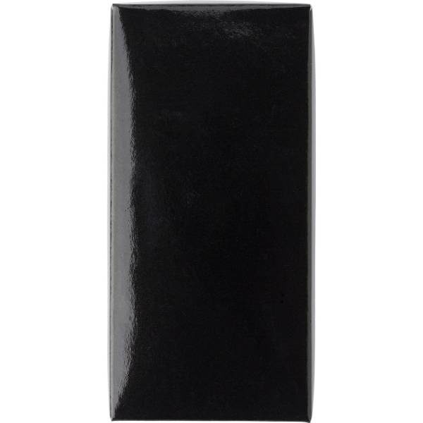 Wąski prostokątny brelok do kluczy, silikonowy z metalową plakietką, w pudełku