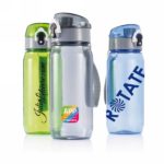 Butelka sportowa 600 ml, wykonana z Tritanu, zamknięcie z blokadą, pasek na rękę, nie zawiera BPA