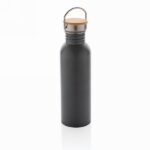 Butelka sportowa 700 ml, wykonana ze stali nierdzewnej, wieczko z bambusa i stali nierdzewnej, z uchwytem, wyłącznie mycie ręczne, nie zawiera BPA