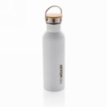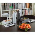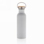 Butelka sportowa 700 ml, wykonana ze stali nierdzewnej, wieczko z bambusa i stali nierdzewnej, z uchwytem, wyłącznie mycie ręczne, nie zawiera BPA