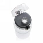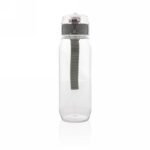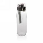 Butelka sportowa 800 ml, wykonana z Tritanu, bezwonna, szczelne wieczko z blokadą i przyciskiem, nie wymaga obsługi oburącz, posiada pasek, nie zawiera BPA