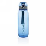 Butelka sportowa 800 ml, wykonana z Tritanu, bezwonna, szczelne wieczko z blokadą i przyciskiem, nie wymaga obsługi oburącz, posiada pasek, nie zawiera BPA