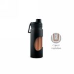 Butelka termiczna Air Gifts 585 ml ze składanym uchwytem, miedziana izolacja próżniowa, podwójne ścianki ze stali nierdzewnej z próżnią między ściankami dzięki czemu zachowuje funkcje termosu i długo utrzymuje temperaturę nie oddając jej na zewnątrz, w ozdobnym pudełku, matowe wykończenie, klasa termiczna: 4 +leakproof