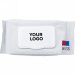 Chusteczki nasączone alkoholem (75%), 50 szt., szczelne opakowanie utrzymuje chusteczki wilgotne, plastikowa pokrywa z miejscem pod znakowanie