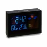 Stacja pogodowa z ekranem LCD, posiada czujnik zewnętrzny, funkcje: zegar, kalendarz, temperatura wewnątrz i na zewnątrz, prognoza pogody, wilgotność, budzik