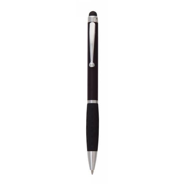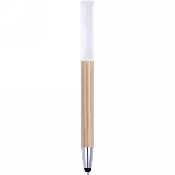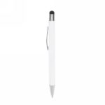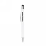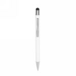 Długopis, touch pen, biały trzon, grawer ukazuje błyszczącą powierzchnię w kolorze gumowej końcówki