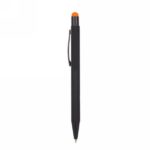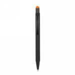 Długopis, touch pen, czarny gumowany trzon, grawer ukazuje błyszczącą powierzchnię w kolorze gumowej końcówki