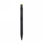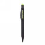 Długopis, touch pen, czarny gumowany trzon, grawer ukazuje błyszczącą powierzchnię w kolorze gumowej końcówki