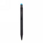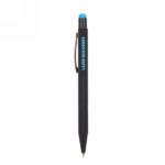 Długopis, touch pen, czarny gumowany trzon, grawer ukazuje błyszczącą powierzchnię w kolorze gumowej końcówki