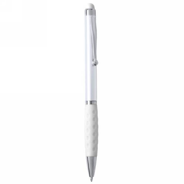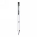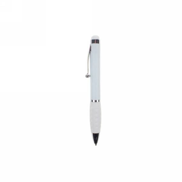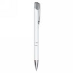 Długopis z gumowanym wykończeniem i srebrnymi elementami, grawer ukazuje lustrzaną powierzchnię