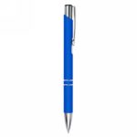 Długopis z gumowanym wykończeniem i srebrnymi elementami, grawer ukazuje lustrzaną powierzchnię