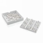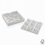 Gra Sudoku, wykonana z drewna z certyfikatem FSC® (Forest Stewardship Council), w komplecie instrukcja z zasadami oraz rozwiązania łamigłówek, ułożenie może zająć od 20 minut do 2 godzin, zależnie od doświadczenia, zapakowany w pudełko podarunkowe z certyfikatem FSC® (Forest Stewardship Council)