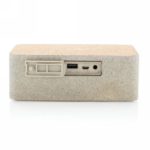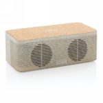 Ekologiczny głośnik bezprzewodowy 5W, BT 5.0, ładowarka bezprzewodowa 5W, wykonany z naturalnych włókien słomy pszenicznej, wbudowany akumulator o pojemności 1200 mAh umożliwia odtwarzanie muzyki do 4 godzin, podczas używania obu funkcji urządzenie powinno być podłączone do zasilania, bezprzewodowe ładowanie jest kompatybilne ze wszystkimi urządzeniami posiadającymi możliwość ładowania indukcyjnego, zasięg do 10 m, wejście AUX, wejście USB typu C, kabel USB typu C 150 cm komplecie