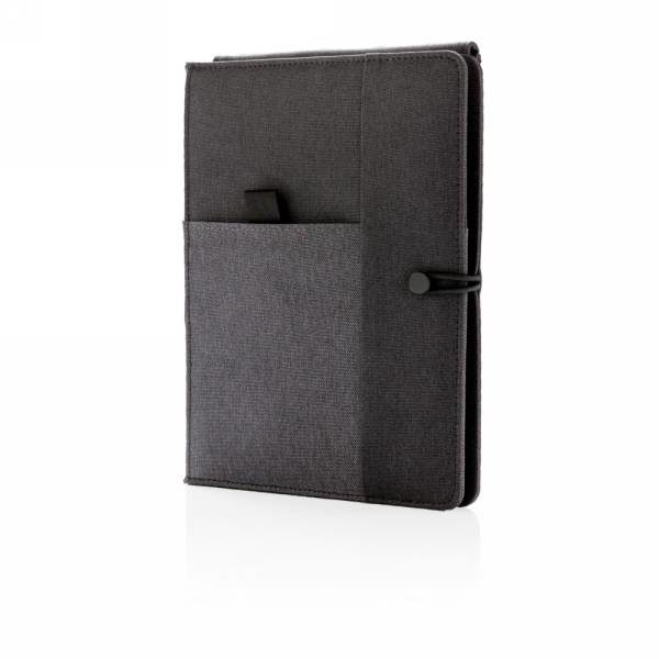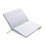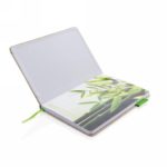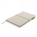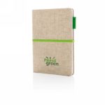 Ekologiczny notatnik A5 (80 kartek w linie z papieru z bambusa), okładka z juty, tasiemka zakładkowa i elastyczna opaska do zamykania