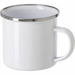 Emaliowany kubek 350 ml, krawędź ze stali nierdzewnej, zapakowany w kartonowe pudełko