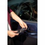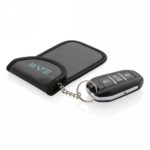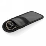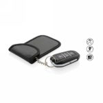 Etui na klucze samochodowe z ochroną RFID, pokrowiec blokuje wszystkie sygnały z wewnątrz i zewnątrz zapobiegając włamaniu lub kradzieży samochodu wynikającej ze zdalnego przechwycenia danych z kluczyka, w tym danych zapłonu, wykonany z nano materiału o podwójnym splocie blokującym, brelok w komplecie